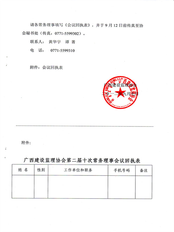 关于召开广西建设监理协会第二届十次常务理事会议的通知