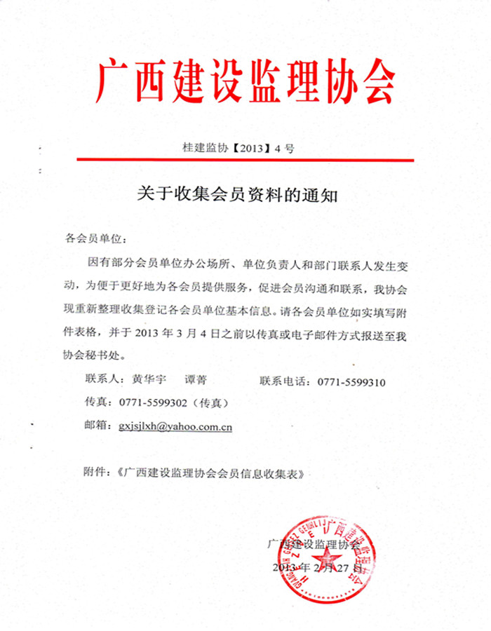 广西建设监理协会会员信息收集表.doc