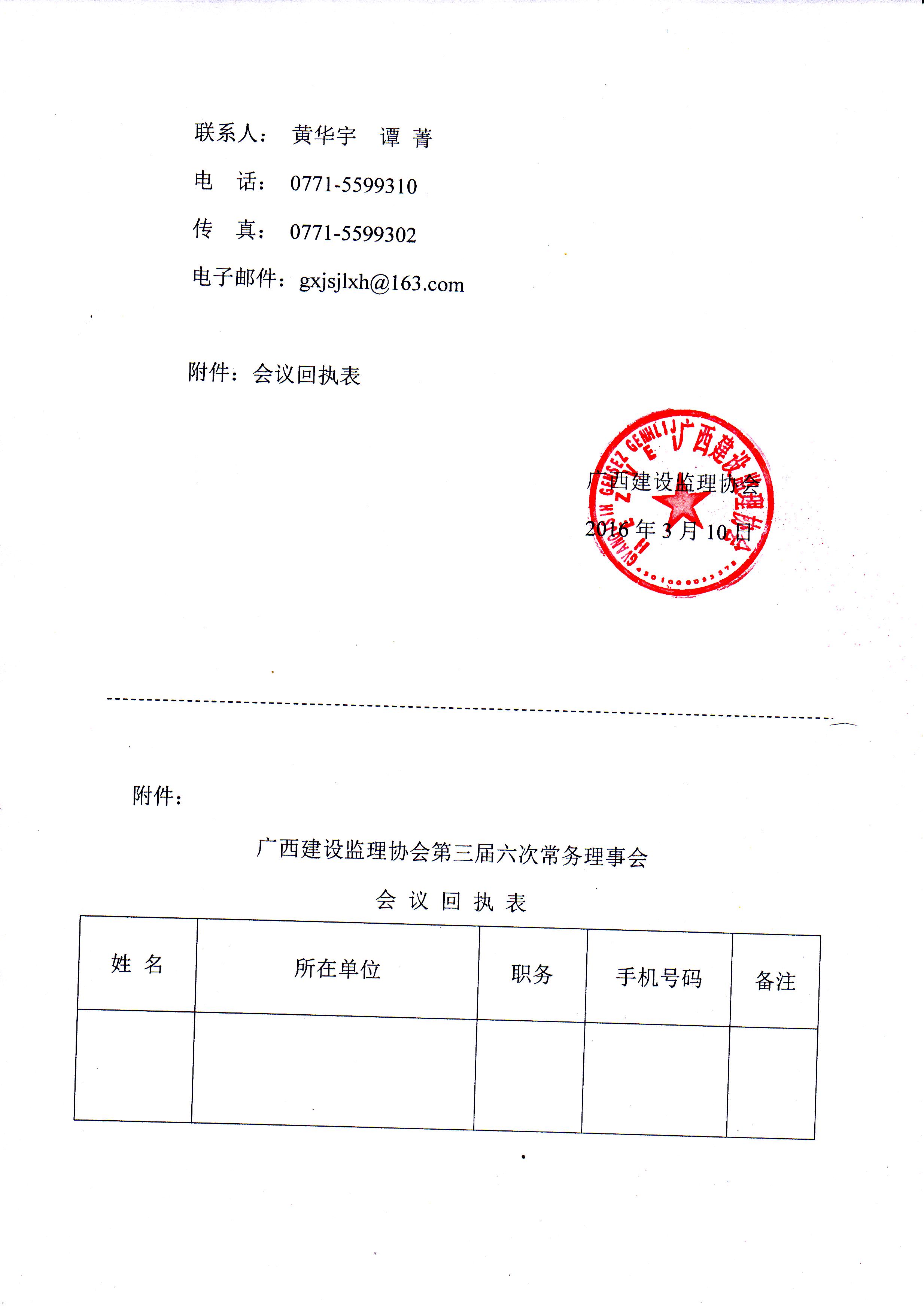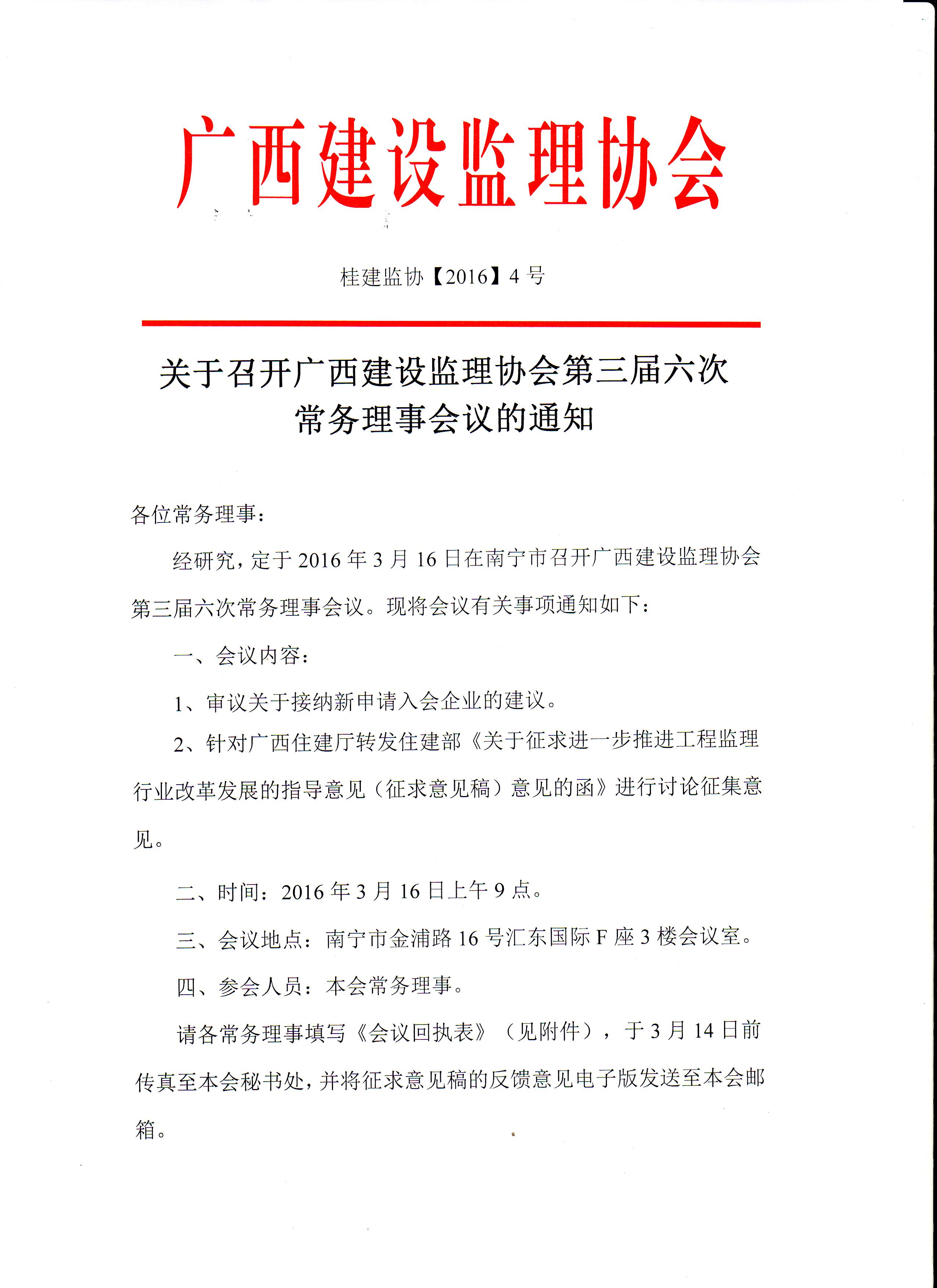 关于召开广西建设监理协会第三届六次常务理事会议的通知