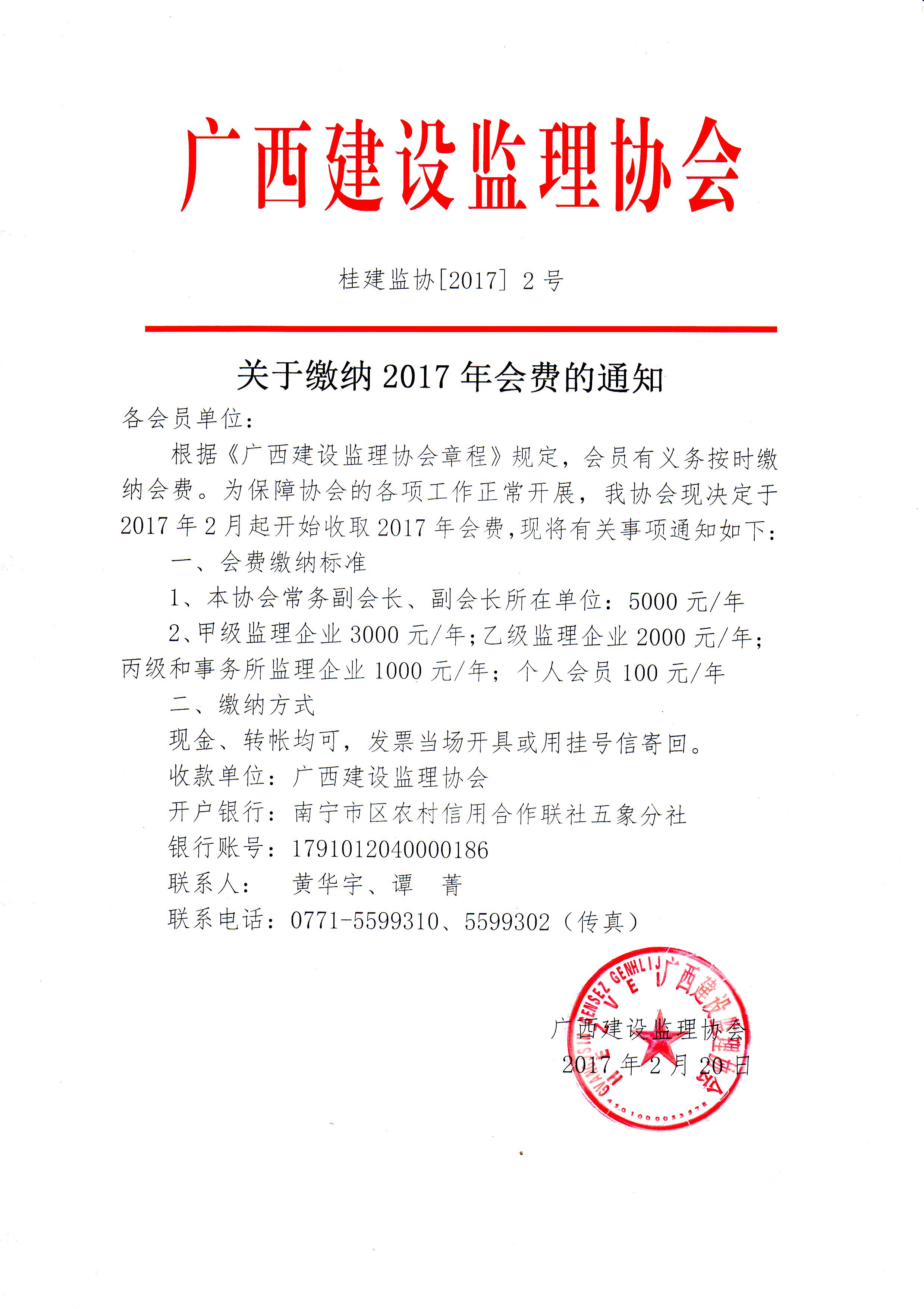 关于缴纳2017年会费的通知