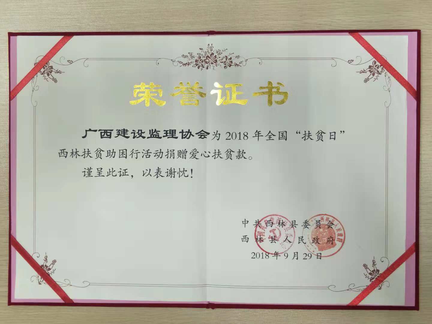 广西建设监理协会募集西林县八达镇2018年扶贫项目捐款明细表 单位名称 金额(元) 广西建设监理协会 5000 广西城建咨询有限公司 5000 广西大通建设监理咨询管理有限公司 5000 广西广厦工程建设咨询管理集团有限公司 5000 广西建柳工程咨询有限公司 5000 广西建筑科学研究设计院工程建设监理公司 5000 广西南宁建科工程监理有限责任公司 5000 广西万安工程咨询有限公司 5000 广西至佳建设工程咨询有限公司 5000 广西中信恒泰工程顾问有限公司 5000 广西壮族自治区建设监理有限责任公司 5000 南宁品正建设咨询有限责任公司 5000 中国轻工业南宁设计工程有限公司 5000 南宁市建昶建设工程监理咨询有限责任公司 4000 北海鑫诚建设监理有限责任公司 3000 广西高质建设管理咨询有限公司 3000 广西南宁宏翔工程建设监理有限责任公司 3000 广西中铝建设监理咨询有限公司 3000 南宁市城市建设监理有限责任公司 3000 合计 84000