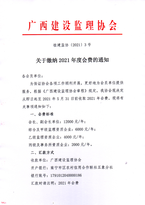 关于缴纳2021年度会费的通知